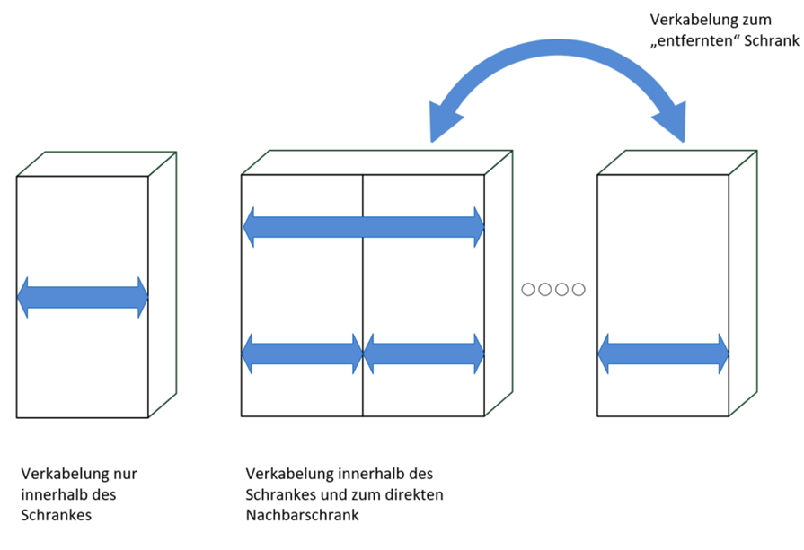 Die Betrachtungen gelten unabhängig von der Verfügbarkeitsklasse. Im Prinzip wird ein Verbot für Patch-Verkabelungen ausgesprochen, die reihenübergreifend durchgeführt werden bzw. wo dies zentraler Bestandteil des Verkabelungskonzeptes ist.