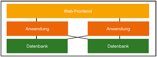 Eine solche redundante Architektur zeigt Abbildung 2. Auffällig ist, dass das Front-End nicht redundant zu sein scheint. Darauf wird später eingegangen.