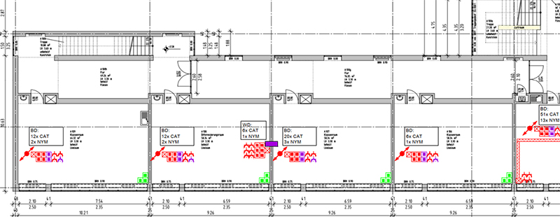 Es ist denkbar, mit diesen unzureichenden Unterlagen mehr schlecht als recht eine Bestandserfassung und Neuplanung der IT-Anschlüsse durchzuführen, jedoch sieht das bei einer eventuellen Neuplanung der Stromversorgung ganz anders aus. Hier ist die Bestandsbeurteilung ein wichtiges Beurteilungsmittel zur Bewertung der Nutzbarkeit und Ausbaubarkeit der Stromversorgung. Beispielsweise ist der Umbau einer Niederspannungshauptverteilung mit erheblichen Kosten verbunden, und birgt ein großes Störpotenzial für den Schulbetrieb. Die Dokumentation der Elektroverkabelung liegt in 95% der Fälle – wenn überhaupt – nicht digital vor und wurde nie bei Änderungsmaßnahmen fortgeführt. Damit ist eine solche Dokumentation quasi nicht existent.