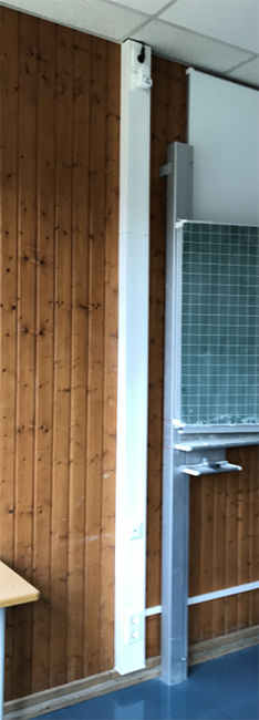 In vielen Schulen wird die Montage der neuen IT- und Stromanschlüsse mithilfe senkrechter Geräteeinbaukanäle neben der Tafel realisiert.