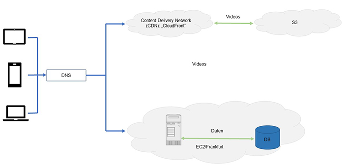 In der Amazon Cloud haben wir das Streaming mittels S3 und CloudFront kostengünstig realisieren können (vgl. Abbildung 3):
