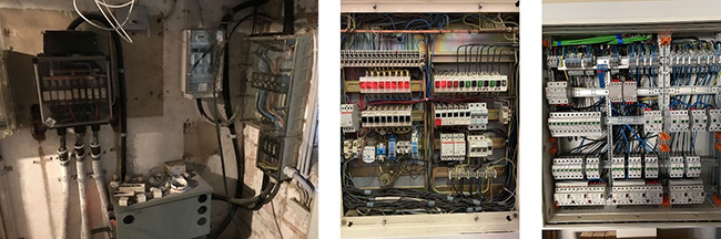 Abbildung 2: Typische Elektroverteiler in Schulen; links: absolut katastrophal; Mitte: schlecht, aber typisch; rechts: ein positives Beispiel!