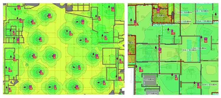 Abbildung 3: Simulation und Messung einer WLAN-Infrastruktur