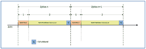 Das Ergebnis zeigt, dass ein Schutzband im Gigabit Ethernet 12,272µs betragen muss. Sollten jedoch Jumboframes oder höhere Übertragungsraten eingesetzt werden, wird sich das Schutzband entsprechend anpassen. Der Nachteil, der mit der Einführung dieser Schutzbänder einhergeht, ist jedoch die Reduzierung des Gesamtdurchsatzes, da während des Ablaufs des Schutzbandes keine Daten übertragen werden können.