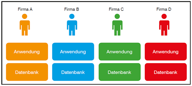 Zum einen haben die Hersteller erkannt, dass eine Public Cloud nur mit einer Multi Tenancy (mandantenfähigen) Infrastruktur wirtschaftlich und sicher betrieben werden kann, denn die Alternative – eine Multi Instance Infrastruktur – wie sie nun einmal bei den meisten Enterprise Lösungen vorzufinden ist, bedeutet, dass für jeden Kunden eine eigene virtuelle Umgebung aufgebaut werden muss, was beim Betreiber der Cloud zu erhöhten Aufwänden im Betrieb dieser Lösung führt.