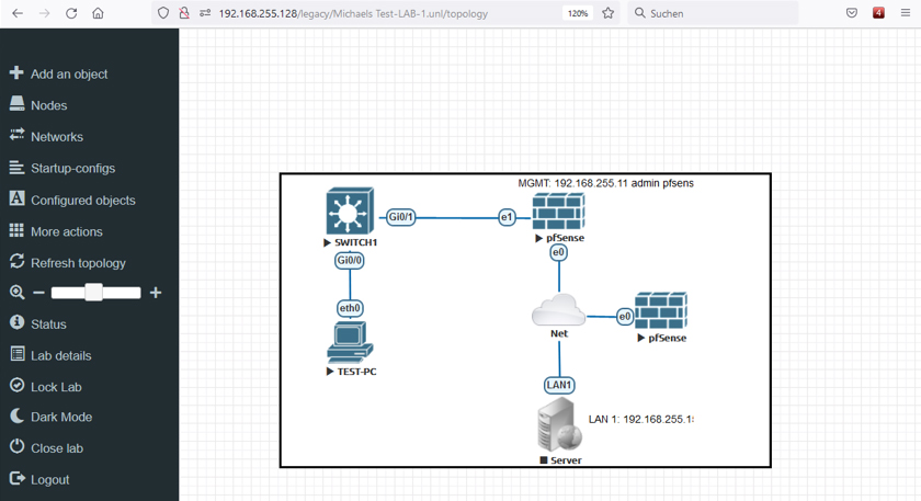 Im Gegensatz zum zuvor beschriebenen GNS3 bietet EVE-NG eine Emulations-Lösung ohne Client-Software, was die Nutzung vereinfacht.