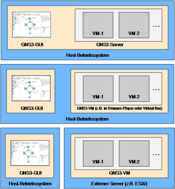 Abbildung 3: Beispiel-Topologien für die Implementierung von GNS3