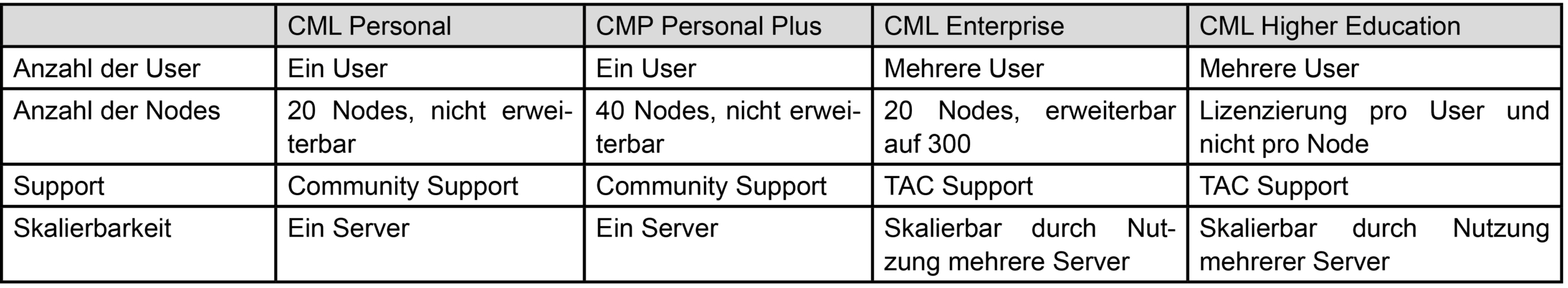 Tabelle 1: Vergleich der unterschiedlichen CML-Versionen