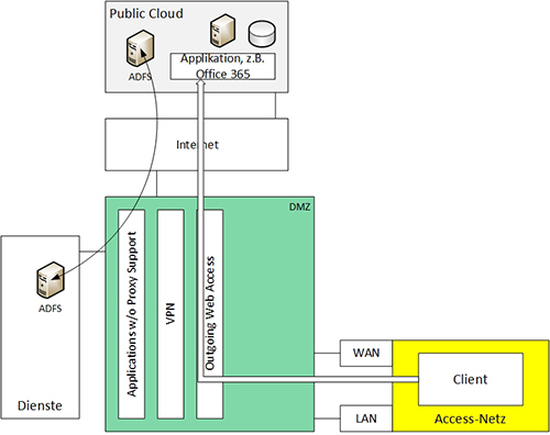 In der Abbildung 2 ist angedeutet, dass Firewalls die Verbindungen zu den Public Clouds absichern. Solche Sicherheits-