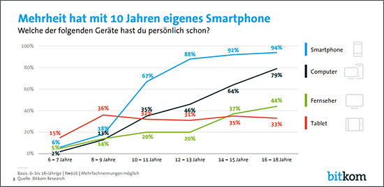 Abbildung 3: Nutzung von Smartphones bei Kindern und Jugendlichen. Quelle: bitkom