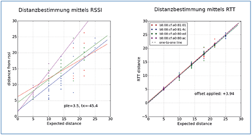 Um aber die genaue Entfernung aus dem empfangenen RSSI abzuschätzen, ist es notwendig, die ursprüngliche Sendestärke des Access-Points zu kennen. Typischerweise kennt das Endgerät bzw. die darauf laufende App die ursprüngliche Signalstärke aber nicht. Mit entsprechender zentraler In-