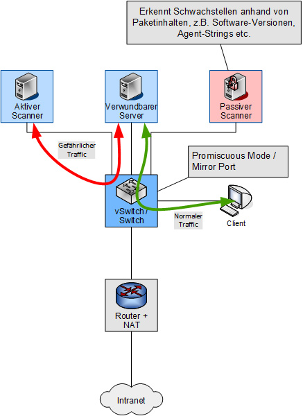 - Da nur durch aktive Verbindungen Schwachstellen erkannt werden können, kann es bei selten genutzten Diensten lange Zeit dauern, bis Schwachstellen gefunden werden.