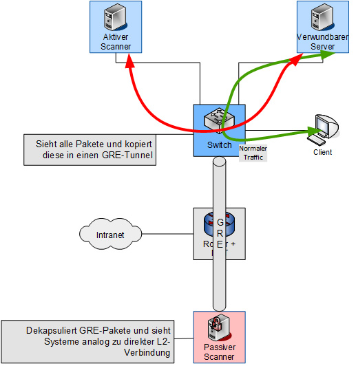 Abbildung 2: Nutzung eines GRE-Tunnels für den passiven Scanner