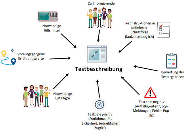 Die Antworten hängen sicherlich davon ab, wie komplex eine IT-Lösung ist, und ob schon Betriebserfahrung mit vergleichbaren Technologien und Produkten besteht. Die mit dem Bild des Kochrezepts genannten Effekte geben aber gute Anhaltspunkte. Wichtige Inhalte einer konkreten Testbeschreibung vermeiden praxisrelevante Pannen der folgenden Art: