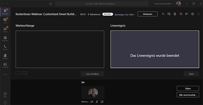 Für große Ereignisse, bei denen die persönliche Begegnung ohnehin nicht möglich ist, nutzen wir zurzeit die Teams-Erweiterung „Live Events“.