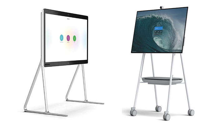 Abbildung 3: Videokonferenz-Endpunkte mit Touch-Display. Links: Cisco Webex Board. Rechts: Microsoft Surface Hub 2.