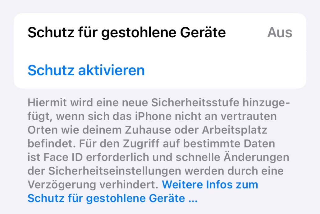 Abbildung 2: Ein Schalter mit großer Wirkung: Diebe haben es mit iOS 17 schwer.