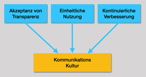 Welche Anforderungen an eine Lösung entstehen in dieser Situation? Gibt es weitere Erkenntnisse darüber, wie wir besser und effizienter kommunizieren können? Was bedeutet überhaupt Effizienz und Produktivität in diesem Zusammenhang einer dynamischen, vernetzten Kommunikations-Struktur?